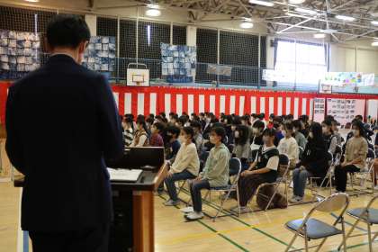 6年生が式典のリハーサルを行いました。何回か練習の様子を見てきましたが、今日は今までで一番の出来具合でした。よびかけの声もしっかり出ていました。歌声も堂々と美しかったです。