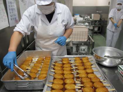 120周年式典に合わせて、きぬたの焼き印入りの五平餅を作りました。