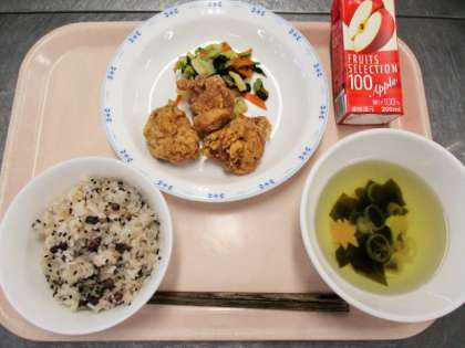 こどもたちは朝からからあげとリンゴジュースを楽しみにしている様子でした。