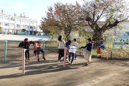 今朝は幼稚園門で子どもたちを迎えました。元気に朝遊びに出てくる子がたくさんいます。