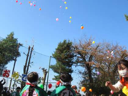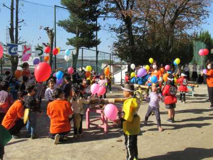 はなぐみたぬきさんたちが配ってくれた風船を、