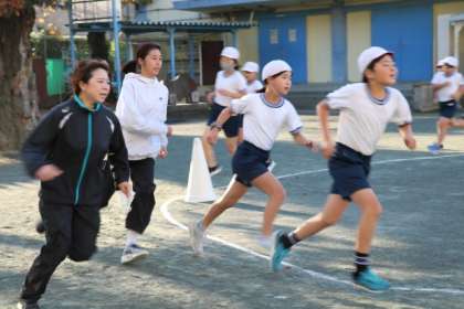 先生がゴールラインでタイムを大きな声で言ってくれます。自分が何本目は何秒くらいで走れたか、次はどのくらいを目標にするか目安にします。