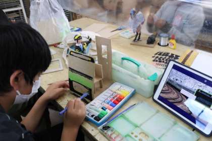 6年生図工の様子です。小道具や周りの背景を作り始めています。自分のなりたい将来像がだいぶはっきり分かるようになってきました。
