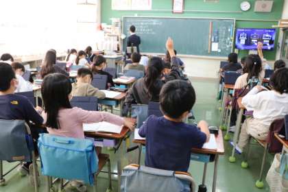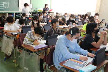 4年生社会・「玉川上水の水は江戸の町の人にどのように配られたのか調べよう」の様子です。先生の勉強もあり、多くの先生が授業を見に来ています。授業については放課後先生たちと振り返ります。