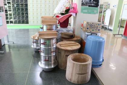 12月3日土曜授業では、砧小学校恒例の「もちつき大会」を3年ぶりに行います。主事さんが、丁寧に保管されていた道具を出して昇降口に並べました。詳細は学校だよりでお知らせします。地域の方、おやじーずの方々にご協力いただき、砧っ子全員に日本の伝統行事を体験させたいと思います。