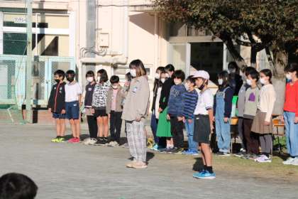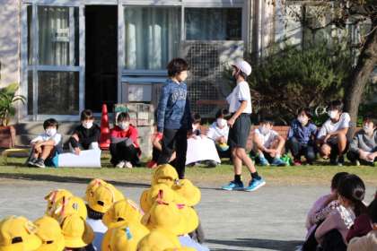金曜日の朝は児童集会です。今日は委員会紹介集会、美化委員会と栽培委員会の発表です。