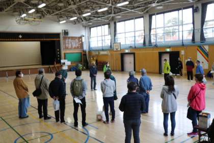 砧小学校避難所運営訓練が行われました。万が一災害が起こった際に、避難所をスムーズに設営できるように地域の方々がいろいろな訓練に参加しました。