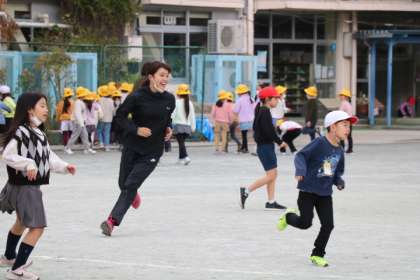 先生や友達と遊ぶと、寒さが吹き飛んでしまいます。