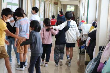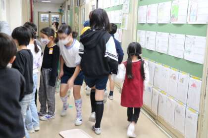 班長さんの6年生は、給食の片づけが終わっていないのを見て1年生のお当番と一緒に手際よく片付けてくれます。最後1年生と一緒にワゴンまで運んでくれて・・・折しも1〜3年生まで担任してくださった先生も一緒で、6年生の成長に涙を流さんばかりに嬉しそうでした。
