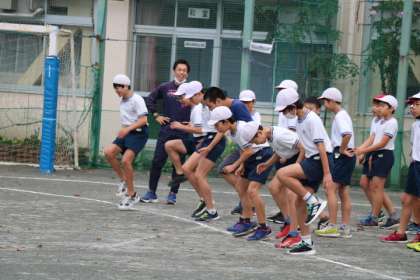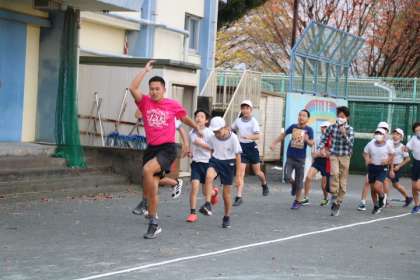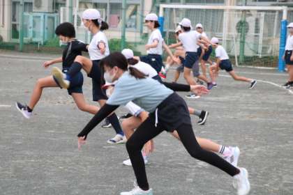 世田谷子ども駅伝朝練習10日目です。今日は温かい朝ですが、念入りに準備運動をします。