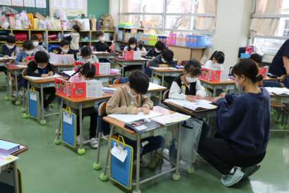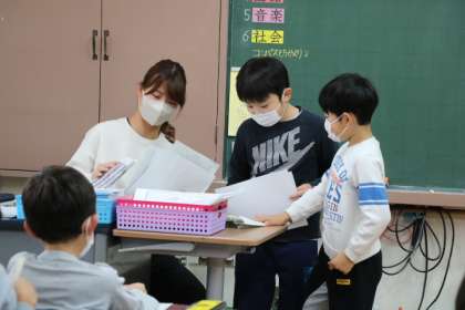 朝自習・・・ではないので、先生たちは一人ひとりにきちんと目を配りながら学習を進めています。小さな積み重ねが学力の定着につながり、落ち着いて朝のスタートが切れる大切な時間です。