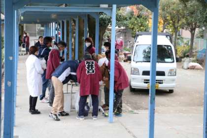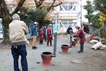 今日は楽しみにしていた「もちつき大会」です。早朝から手伝いに来てくださった地域の方々は検査をして万全の態勢で臨んでくださっています。