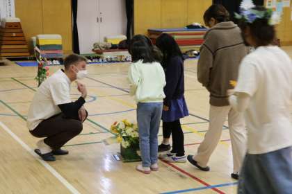 12月3日(土)の午後、家庭教育学級第二弾として「めざせ国際人!〜多様な人と多様な文化を吸収しよう〜」が開催されました。講師の先生方をお招きしてスウェーデンのミッドサマーという行事を体験したり、英語に親しんだりする楽しい企画でした。参加者の皆さんは、親子で楽しみながら国際人としての感性を高めることができたようです。