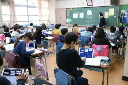 3年生算数の様子です。研究授業の関係で担当の先生が変わっていますが、みんな真剣に考えています。