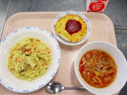 今日は世界の料理「スペイン」です。サッカーワールドカップでのスペインとの一戦は記憶に残る素晴らしい試合でしたね。こどもたちからは「スペインおいしかったです!」と声をかけてもらいました。
