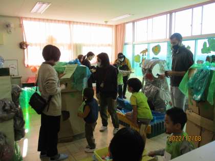 段ボールに開けられた小さな穴をのぞいたりしながら動物を探す、大人になってからはなかなかしない遊びのコーナーもあり、子どもたちならではの面白い発想を様々な場所で楽しみました。