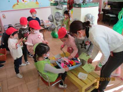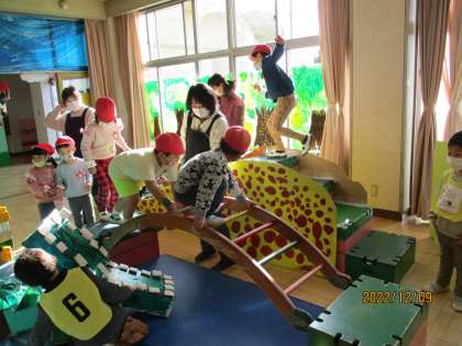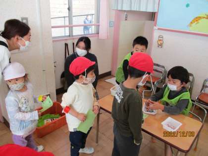 遊びに来た年少さんに、年長さんは分かりやすく、楽しめるように・・声を掛けていました。