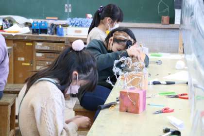 5年生図工「見つけて!ワイヤードリーム 砧タワーを作ろう」の様子です。針金と言うみんな同じ素材なのですが、それぞれ色々な工夫をして作品に生かしています。