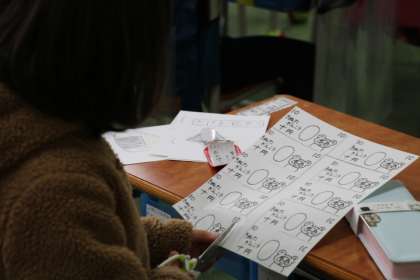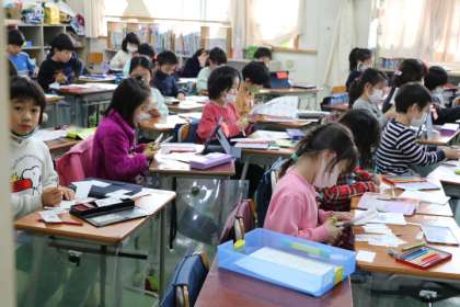1年生国語「もののなまえ」の学習でお店屋さんごっこの様子です。お金の準備をしています。