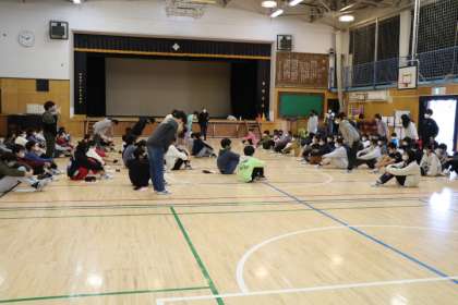 今日は6年生から5年生へ鼓笛の引継ぎです。5・6年生全員が集まっている体育館でフラッグ、メジャー、楽器それぞれ5年生のパートが発表になり、教えてくれる6年生の担当の子と一緒に早速練習です。