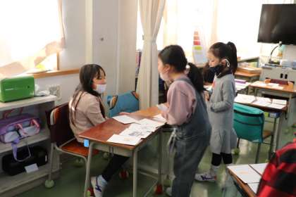 お店屋さんも、お客さんも、楽しい活動ですがふざけたり遊んでしまったりする子はいません。みんな楽しく真剣に取り組んでいます。