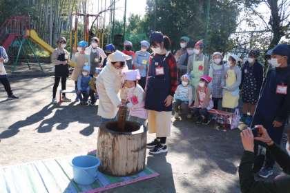 杵の動きに合わせて「よいしょ〜」とみんなで応援します。