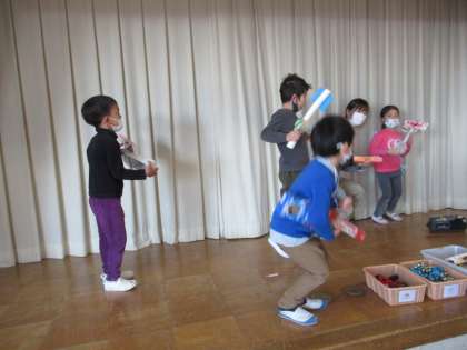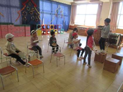 自分たちで遊びを変化させていく子どもたち。友達と一緒に協力して遊びを進めていくのはさすが、年長さん。