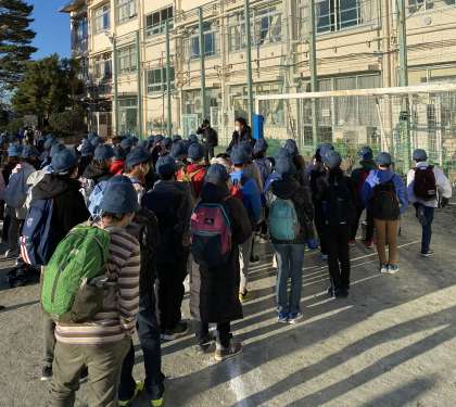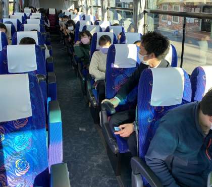 5年生の社会科見学です。出発式を終えて無事出発しました。天気にも恵まれて楽しい社会科見学になりそうです。
