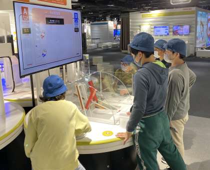 体験グループの様子です。最先端の技術を楽しく体験できるコーナーばかりでみんな夢中で体験していました。