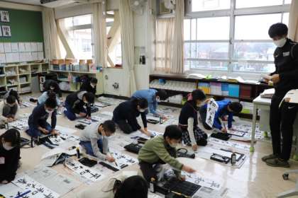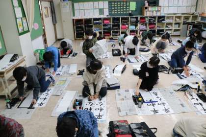 6年生書写・書き初めの練習の様子です。静かな雰囲気の中集中してがんばっています。