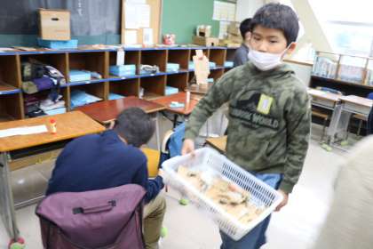 と子どもたちが満足そうに報告してくれます。片付けもみんなで協力してきれいにしていました。「ごみをなるべく少なく、小さく!」という指示が先生からあります。環境のことまで考えて楽しめる学級がすてきです。