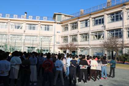 今日は2学期の終業式です。子どもたちの姿勢に、いつも以上に一人一人の意志が感じられてとても立派でした。子どもたちには、「自分の思っていることや考えていることを、人に話すことは大切」という話をしました。私が、毎朝登校時間に子どもたちを門で迎えているとき、授業の様子を教室に見にいったとき、廊下で会った時など、子どもたちはいろいろなことを話してくれます。テレビの話、お楽しみ会の話、弟妹の話いろいろな話です。私はそれがとてもうれしいです。その時間が冬休みに入りなくなってしまうのは寂しいですが、冬休みの期間はぜひ家の方とたくさんお話をしてきてほしいと思います。