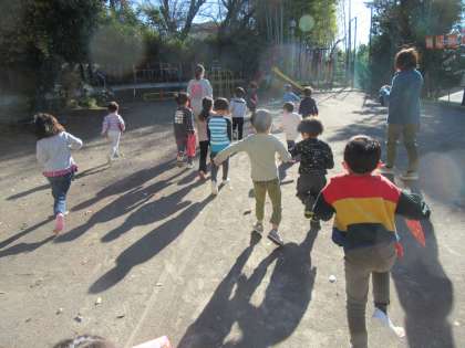 外に飛び出す子どもたち。