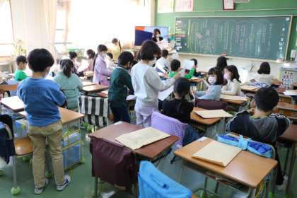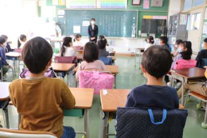 転入してきたお友達の自己紹介を聞いたり、提出物を出したり、どのクラスも落ち着いている様子です。