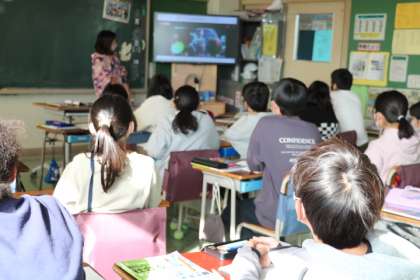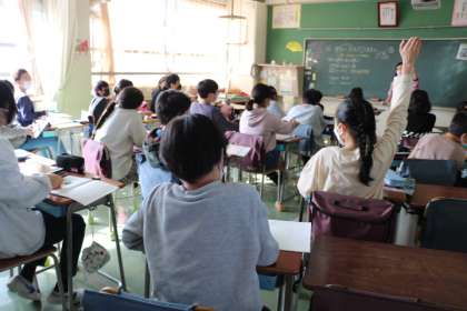 5年生社会の様子です。情報を活かす産業という学習です。ネットで買い物、カード1枚で乗り物を利用、周りには情報化の進展に伴う産業の変化や発展が溢れています。先生が用意した動画をから、早速、情報の種類や活用の仕方を調べてみたいと子どもたちは意欲的です。
