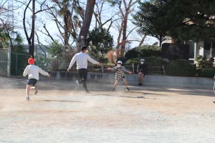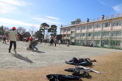 たくさん遊んで体もポカポカになったのでしょう。芝生には脱いだ遊んでいる最中暑くなって脱いだ上着が並びました。