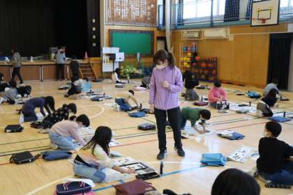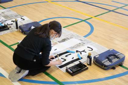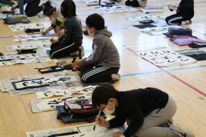 3年生の書初めの様子です。3年生は「つよい力」という字を書いていました。みんなそれぞれの思いを胸に集中して取り組んでいました。意外と難しいひらがなも丁寧に書いていました。