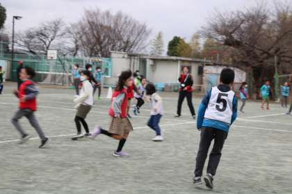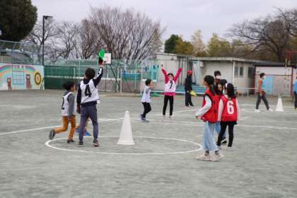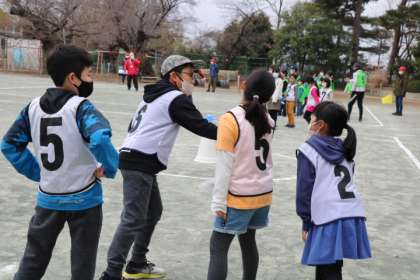 1点入るとまたスタート位置から始めます。高学年が低学年にアドバイスをして、ゲーム再開です。