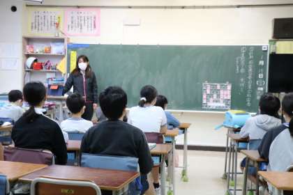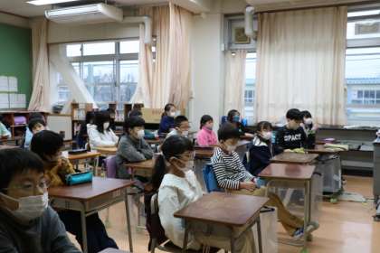 今日の全校朝会は、天候が不安定なため放送で行いました。学校外で頑張った子を紹介したり、絵本を紹介して話をしようかと思っていましたが、来週以降に延期です。