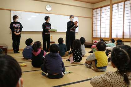 世界各国、大小さまざまなお手玉を見せていただきながらのお話に、子どもたちは惹きつけられて真剣に聞いていました。