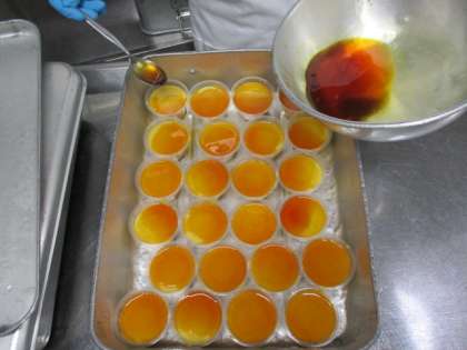 かぼちゃと豆乳、たまご、さとうを合わせてから蒸して作りました。