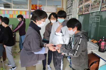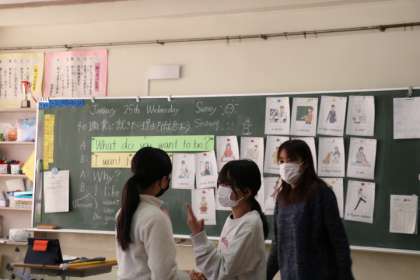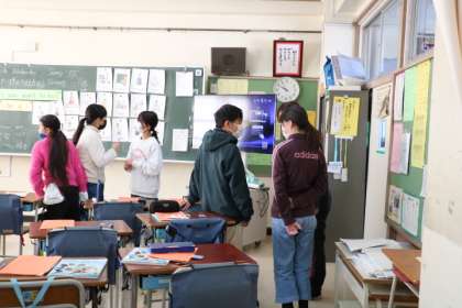 6年生外国語の学習の様子です。少しドアを開けたとき、アクティビティーの真っ最中です。(そのままドアを閉めようかと思いましたが)教室に入ると・・・ごく自然に