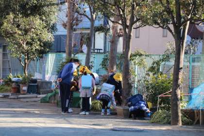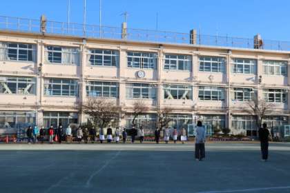 校庭では、図書委員会が明日の集会の練習をしたり、登校途中で見つけた氷や花壇の霜柱で遊んだりしています。