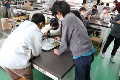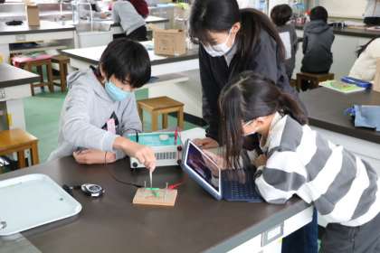 6年生の理科の授業の様子です。電熱線に電気を流す実験を行っていました。アイロンやドライヤーなどの身近な道具に電熱線の仕組みが使われていることが、よく理解できたようです。