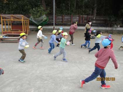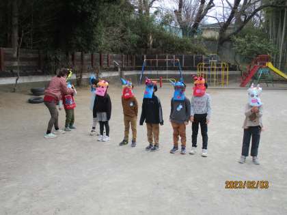 豆まきは、1組、2組がそれぞれ鬼役、豆をまく役を入れ替わりながら2回行いました。