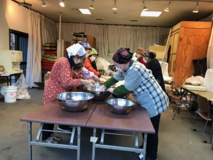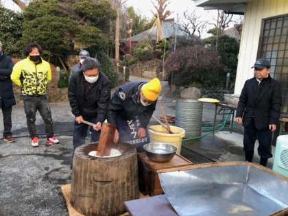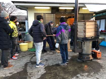 今日は妙法寺での二の午祭りです。写真は、朝6時から準備に取り掛かる石井戸の皆様です。