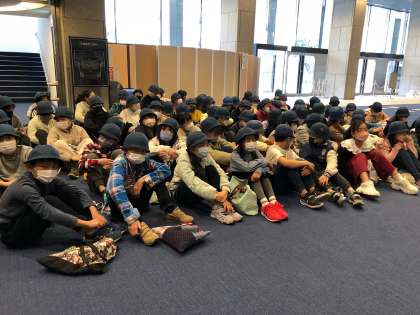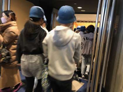 バスは順調に会場に着きました。少し早く着いたので開場を待っている砧の子たちは、とても静かです。