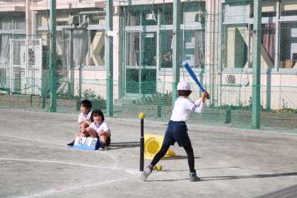 3年生の体育の授業の様子です。ティーボールの試合を行っていました。チームとしてまとまりができてきました。打つ、捕る、投げるなどの技能面も上達してきています。