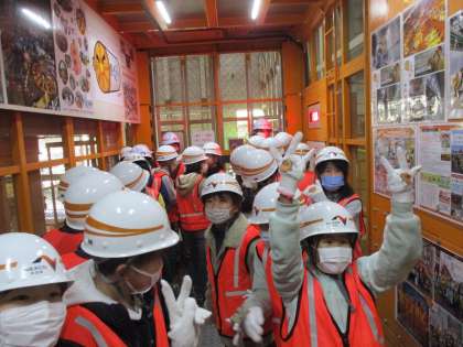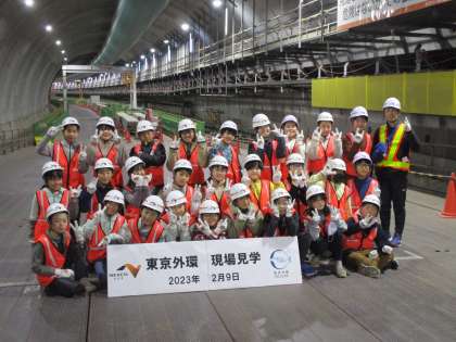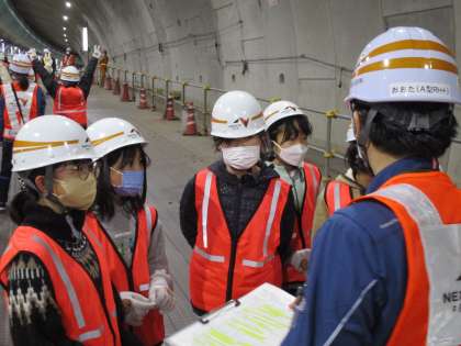 トンネルの側面になる資材や中央制御室を見学した後に、いよいよエレベーターに乗ってトンネル内に入ることができました。トンネル内は想像以上の迫力でみんな驚いている様子でした。