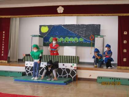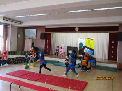 9日は1組が「忍者ツバメ丸大運動会の巻」の劇と合奏をしました。